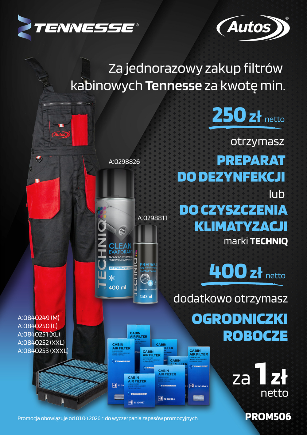 - za 400 zł netto otrzymasz preparat do dezynfekcji lub czyszczenia klimatyzacji Techniq i dodatkowo spodnie robocze za 1 zł netto.