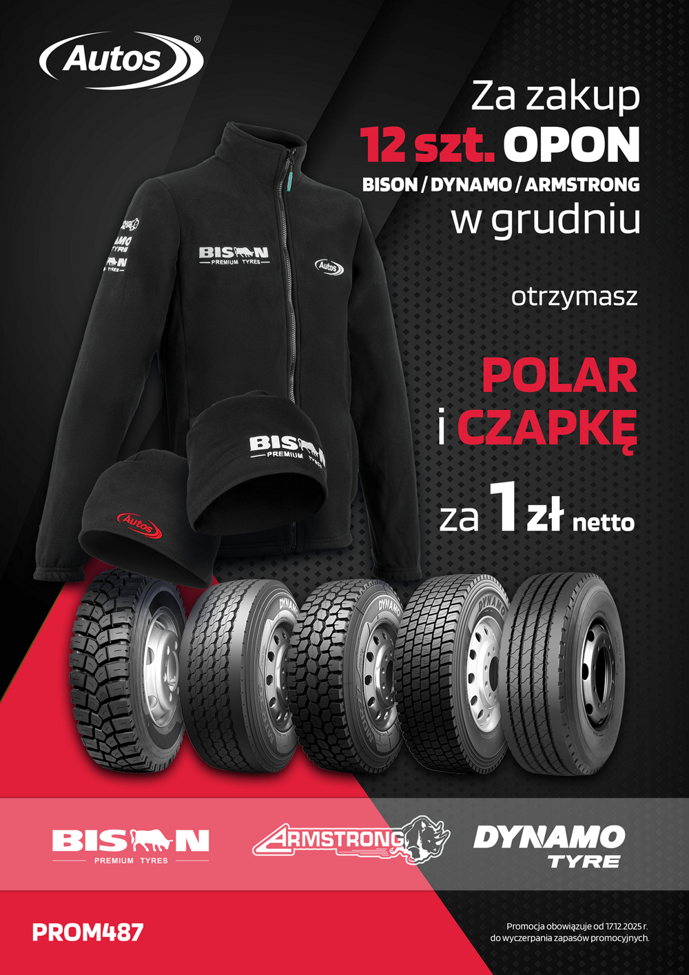 Tylko w grudniu! Za zakup 12 opon marek Armstrong, Bison oraz Dynamo, polar i czapka za 1 zł netto.
