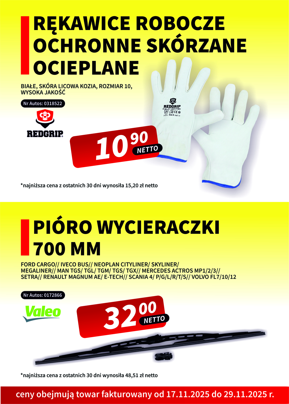 - rękawice robocze, skórzane oraz ocieplane za 10,99 zł netto/1 szt.