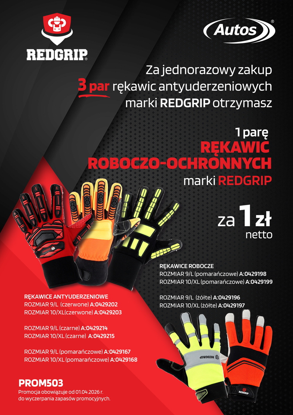 Za jednorazowy zakup 3 par rękawic anty uderzeniowych Redgrip 1 parę rękawic roboczo-ochronnych Redgrip za 1 zł netto