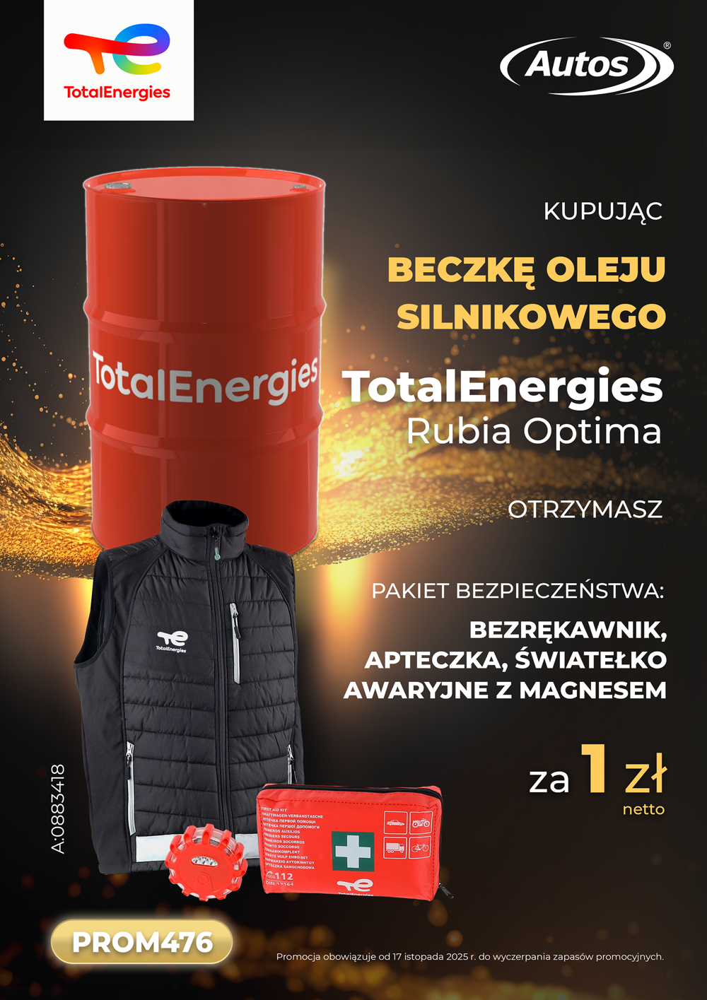 Za zakup beczki oleju silnikowego Total z gamy Rubia Optima otrzymasz bogaty zestaw bezpieczeństwa zawierający: